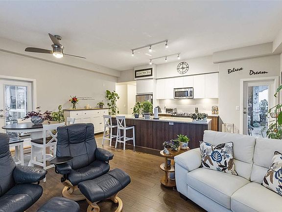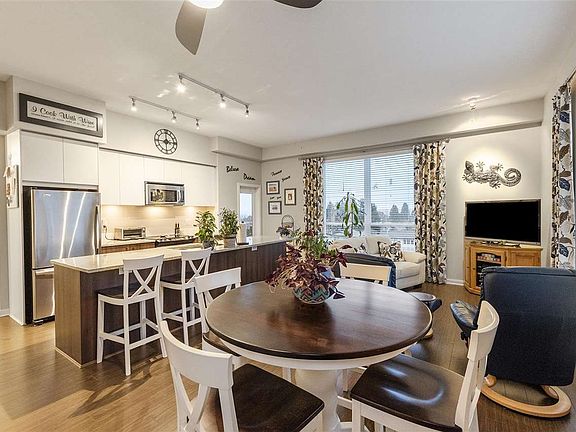 Luxurious resort-living at Waterstone! This TOP-FLOOR, 2 bed + den, 2 bath, 1082 sq ft. corner PENTHOUSE suite offers an open floor plan with 10 ft ceilings, and the ability to work from home! Kitchen includes SS appliances + enhanced cupboard shelving w. pull-out baskets, pan holders, and more! TWO separate SPACIOUS PATIOS allow you to enjoy Mt. Baker views and sunrise/sunset! Indulge in the master bedroom with a wood feature wall, west patio access, and a professional Stor-More custom walk-in-closet. In the en-suite, enjoy in-floor heating and an upgraded shower wand. LED and dimmer lights throughout. Full-sized Whirlpool w/d. Pets and rentals allowed! 2 parking spaces and a rare oversized storage locker. This home won't last long! Contact today to book your private showing this weekend!