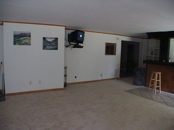 Well built home with huge garage, very large rec room with 12 foot wet bar and door leading out to large deck, firepit, original hardwood from old area schoolhouse. 4 bdr up, 2 down, wooded area surrounded by state hunting land. Few miles from town, dirt road, large 1 acre lawn. Home has been partially renovated after being purchased as a foreclosure in 2009. Needs some updating.