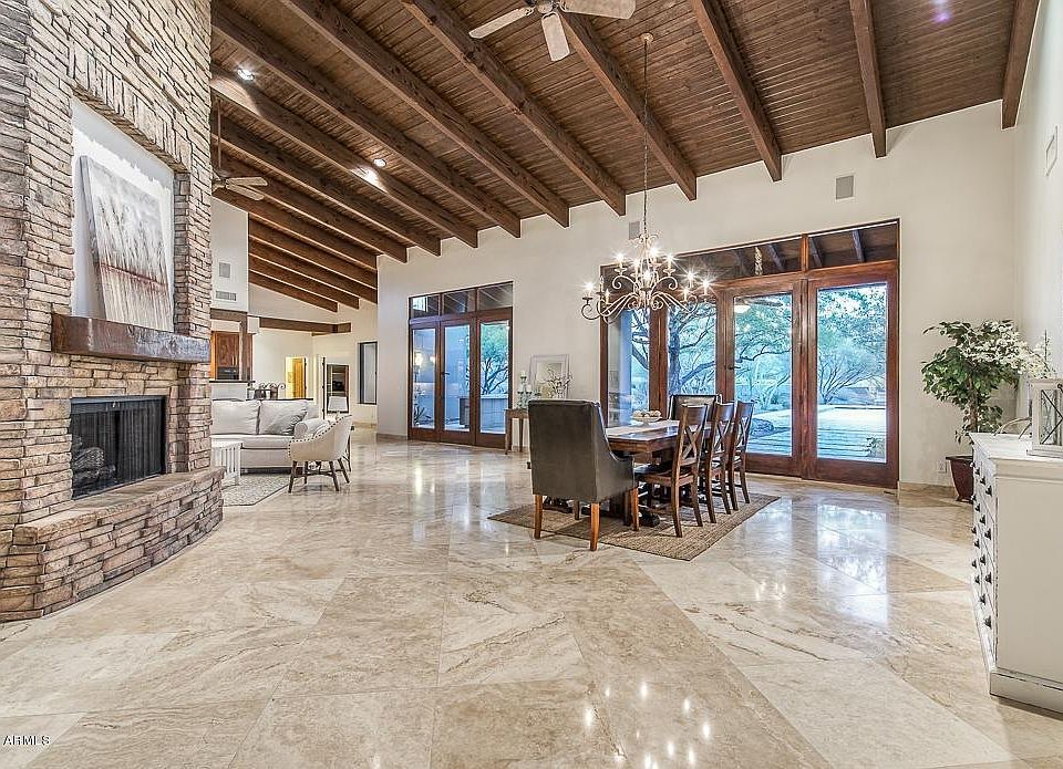 Major reduction with motivated seller. Bring ALL OFFERS to this private 1.12 acre desert sanctuary. Gated entry. Spacious & open great room w/ vaulted ceiling, gas fireplace & spectacular backyard views. Custom remodeled kitchen opens to great room. Dacor appliances w/ 6 burner gas cooktop, double ovens + warming drawer, under counter wine fridge, ice machine, custom cabinetry, granite countertops & butcher block island w/sink & bar seating. Master has separate den/office, huge bath w/ mountain views & 2 walk-in closets. Outside enjoy more views, sparkling low chlorine pool, full outdoor kitchen, 2 gas firepits & large covered patio w/ speakers & misters. In-wall speakers, reverse osmosis, air purification system, dual tankless water heaters & 4-zone AC. Don''t miss this amazing property.