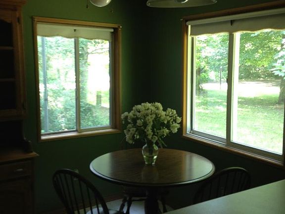 Cinder block older 2 story farm house. Unattached garage. Butts up to PohlCat Golf Course. Livable but needs some updating. Beautiful country setting. on 5 acres.