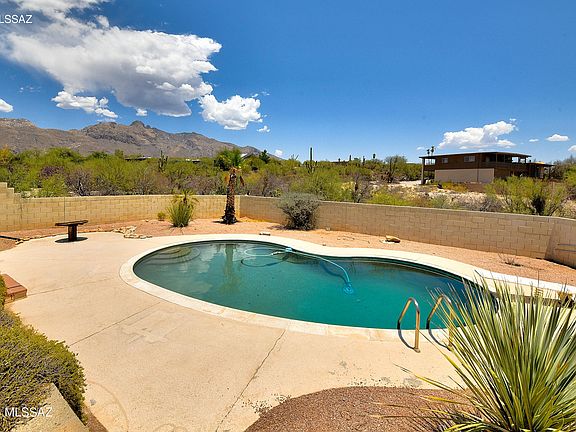 Fantastic opportunity to get into Santa Catalina Estates with this spacious foothills charmer w/big mountain views and gorgeous pebble tec pool. Generous living & dining rooms w/dramatic stone FP & graceful arched windows, crowned by a vaulted ceiling w/skylights. Sleek kitchen complete w/breakfast bar, cafe nook, wet bar & extensive built‑ins anchors the home. Primary retreat w/dual vanities & oversized walk‑in shower as well as a private office w/access to the pool area. Lg ensuite second bedroom. Step outside to a low‑maint bkyd boasting terraced planters, covered patio & pool; your private oasis for sunset swims against a mountain backdrop. Attached carport w/secure storage keeps gear organized. Move right in and celebrate the vibe, or unleash your design vision