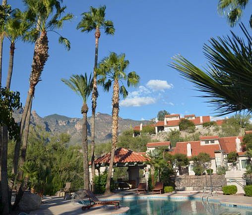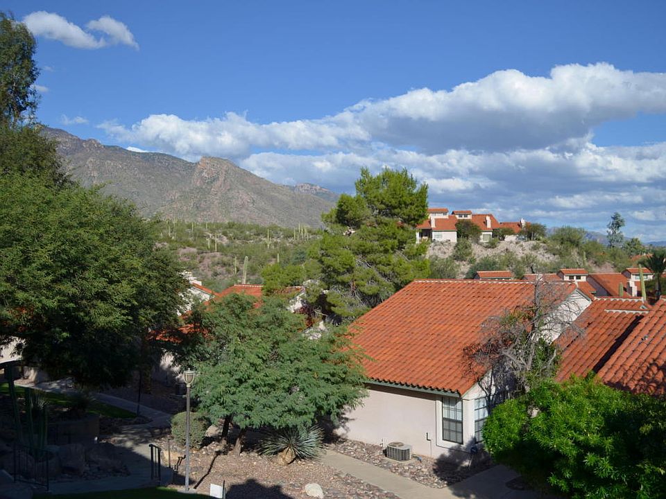 All condos are not created equal and as UPDATED one bedrooms go--I have not seen a better value. The HOA fee is less than $175 which makes it the lowest in the Foothills. A SECOND--TOP floor unit with cathedral ceilings-it has a concrete foundation making it safe and soundless. I met the neighbors below and they have never heard a peep. Covered parking 10 feet from front door with level entry. Inside there is a fireplace (WB or electric feature), updated kitchen with lots of light and a breakfast bar, full size washer/dryer, large walk-in closet in large bedroom. Outside the grounds are lush and include a lit tennis, pool and exercise room. The location is 200 yards from La Encantada, Tucson's best shopping, such as Apple store, top restaurants. Pima Canyon, Finger Rock trail and