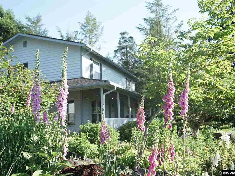 Close-in country living at its finest! Peaceful setting is delightful. Energy efficient solar panels, garage w/electric car charging station, new maple flooring, gourmet kitchen, fenced garden space, fruit trees, stainless appliances, granite counters, kitchen/dining area w/fireplace, lots of windows and solar tube for natural light. Covered wrap-around porch overlooks garden area, paved walk, room for shop/RV. Heat pump w/AC Well-appointed rooms. Truly a 1-of-a-kind setup, min to town, shopping, schools.