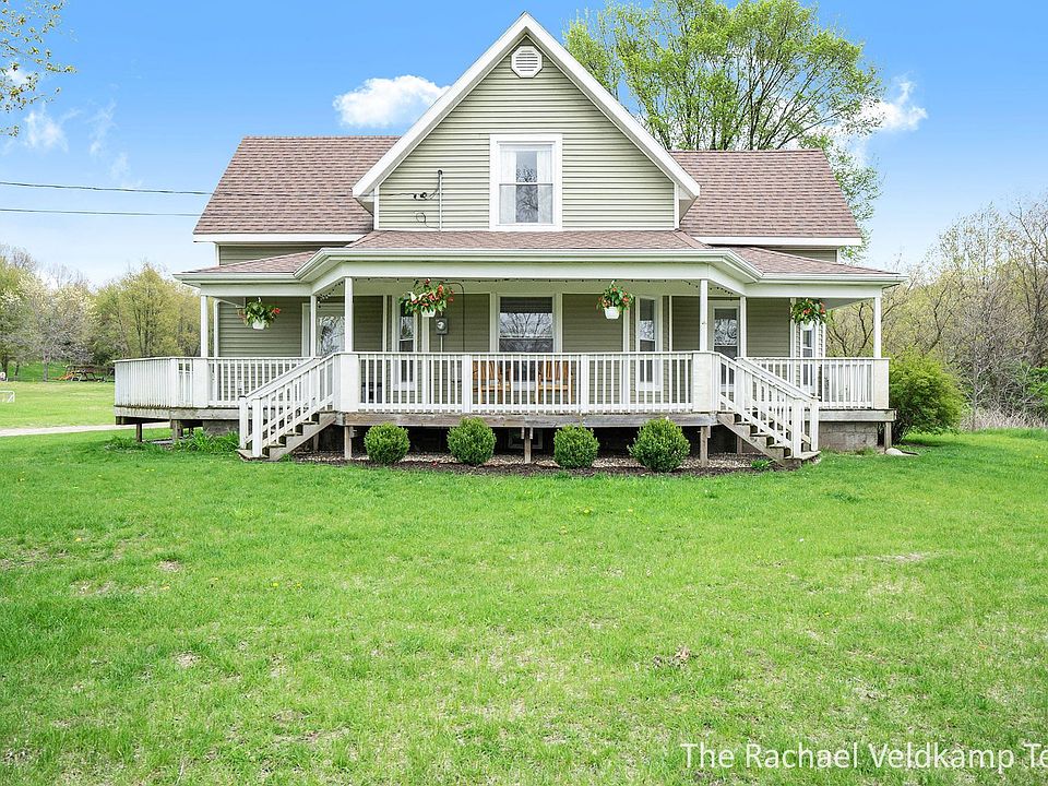 HIGHEST & BEST Offers DUE 5/20 at 12pm! Set on 2 acres in the Caledonia School district, this 4 bed 2 full bath renovated farm house is the pinnacle of charm with a modern kitchen, newer mechanicals, and 3 stall attached garage with workshop above. This Farmhouse Kitchen & Dining room is the heart of the home. The Kitchen features, beautiful wood tones, center island, granite countertops, stainless steel appliances are a tasteful nod to the old while incorporating the new. The large dining room with refinished wood floors & staircase to upstairs is filled with character & opens up to the Living Room. Upstairs are three of the four bedrooms, full bath & plenty storage space. Main floor laundry closet awaits with storage space. The wrap around porch completes this picture perfect property!