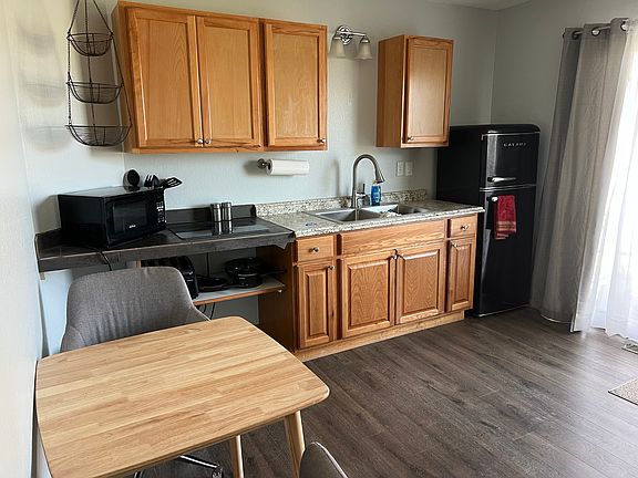 #2Apt. Newly remodeled comes fully furnished or bring your own furnishings a month includes a one car garage with storage electric opener, patio area and shared laundry. Beautiful apartment with Spectacular Mountain views apartment in home separate entrance next to Cobble Creek Golf Course Montrose, nearby walking and bike trails along the river. Includes all Utilities outdoor security cameras, and Wi-Fi at no additional charge. Wood/Vinyl flooring throughout apt. Kitchen/living area with 2 burner cooktop, microwave oven, toaster, refrigerator-freezer, lots of storage including two closets, bedroom with built-in dresser will fit a full or queen size bed (there are steps or a ramp into the apt.). Very quite great for a single professional. One year lease preferred $1350 a month furnished if needed Security deposit $1300. Email me for other lease options. May consider a well behaved non-barking dog at an additional cost of $35 a month. The yard is completely fenced in with a 4 foot fence. The deposit is due to hold the apartment rent is due before moving in. A 30 day move out notice from the first day of the month. NO smoking, NO vaping, NO drugs, NO pets, NO parties in or on premises this is a quiet community a background and credit check references will be done. Outdoor Security System. All utilities paid for including 5g Wi-Fi.