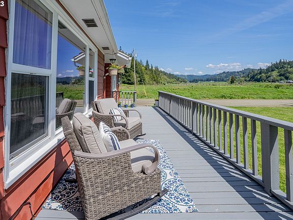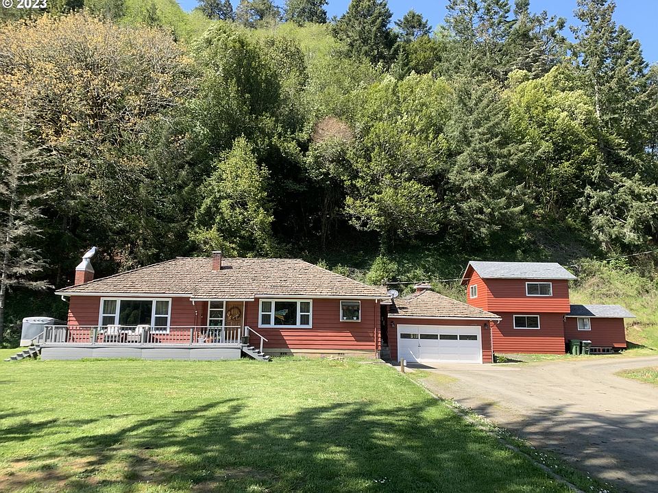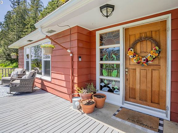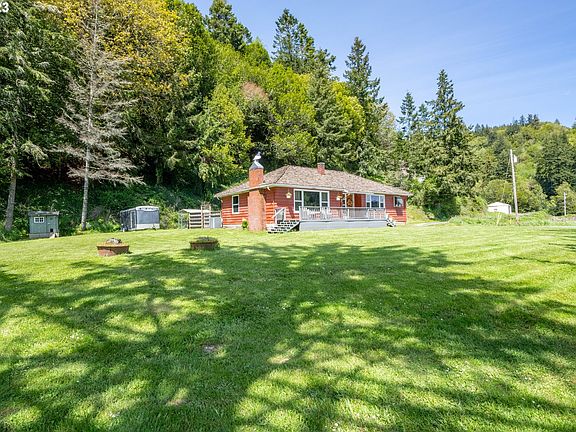 Lovely cottage style home approximately 10 minutes from town. Located along S.Coos River Rd. and across the street from the Coos River. This beautiful 8 Acre parcel includes .5 acre of river frontage, an attached double car garage, a large detached shop w/garage, and lovely backyard with deck and hot tub. Large fireplace in the living-room. R.V. and boat parking with plenty of room for all your toys! Great location if you seek privacy and quiet river views.