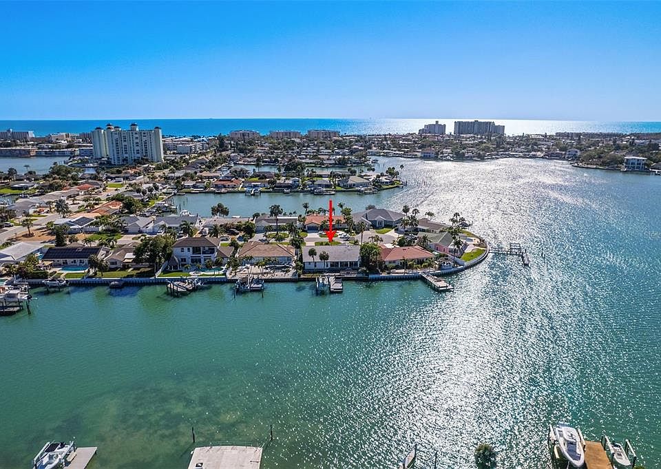 PRICE AT APPRAISED VALUE WITH A HUGE PRICE REDUCTION OF $200K! AND Here is another GREAT bonus: ASSUMABLE FLOOD! If you have been patiently, (or not so patiently,) waiting for the right waterfront property at the RIGHT PRICE to become available in the desirable Three Palms Point neighborhood of #1-rated St. Pete Beach… HERE IT IS: 75’ of waterfront on an almost ¼ acre lot with sweeping views from inside AND out across a wide canal AND beyond toward the Intracoastal Waterway! This is waterfront living as it is meant to be! The 2,493 acsf home with 2-car garage – AND room for a pool - is but ONE house away from a point lot! With only TWO owners since 1985, the home has been meticulously maintained AND high and dry! Even during a king-tide storm, the water was well-below the top of the seawall cap! BONUS: The assumable flood 23/24 policy was only $6,290! Meticulous and loving care is evidenced by the well-preserved cabinetry, tiles, countertops and even the original and functional double ovens! ALL are in exceptional condition. With solid concrete block construction on slab, it was built to stand the test of time, both in terms of its construction AND by virtue of its well-conceived floorplan. Unlike many neighboring homes from this era, this one has an enormous great room with soaring ceilings up to 12’ in height! Indeed, all of the rooms are generously proportioned. With its TIMELESS bones and the soaring ceilings of the great room, this home can easily be re-imagined into the showstopper it was created to be. The dock was completely replaced in November 2015 and the new 12K lift was added in April 2018! Arguably priced now BELOW land value, but offering so MUCH MORE, THIS IS THE BEST DEAL ON THE ISLAND - BY FAR! Land value per Property Appraiser website is $1,346,152!
