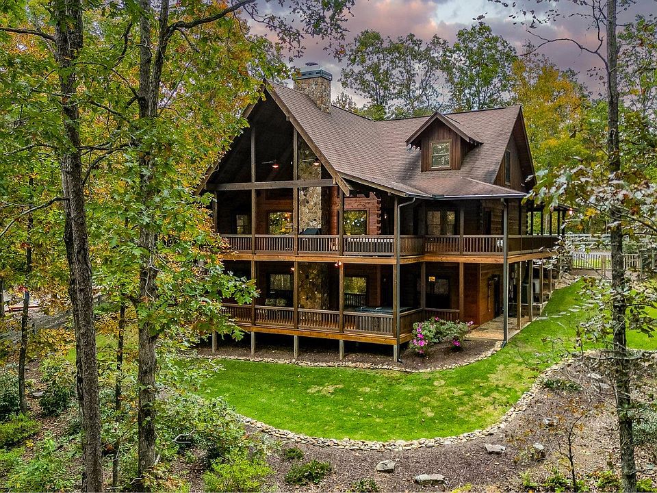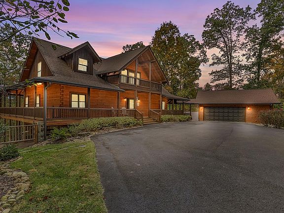 Welcome to your private mountain sanctuary on nearly 30 AC of pristine N GA land, nestled between Ellijay & Jasper. At the heart of this extraordinary estate is a custom-built Satterwhite log home, thoughtfully designed to blend timeless rustic character w/elevated modern living. The great room impresses w/a floor-to-ceiling stone fireplace, flanked by large windows that flood the space with natural light & frame the tranquil views. The spacious kitchen is built for culinary adventures, featuring granite countertops, gas cooktop, wall oven, commercial-size refrigerator, wine fridge & walk-in pantry. A mudroom with built-in counter space & sink adds practicality & convenience. The main-level master suite is a spacious true retreat, complete with live edge wood beams & a luxurious en-suite bath w/soaking tub, walk-in tiled shower, & dual vanities w/additional cabinetry. The upstairs hallways has a custom metal mountain scene railing & 2 large bedrooms anchoring each end of the hallway, both w/private en-suite baths & plenty of room to stretch out. Between them sits a stunning bedroom or office space, enclosed by double glass-paned French doors & opening to its own private balcony—a perfect spot for creative inspiration. The terrace level is an entertainer's dream & ideal in-law or extended-family space, w/full kitchen, theater-style great room w/fireplace, private bedroom & bath, bonus room/gym, laundry & ample storage. Outdoor living is equally impressive with wrap-around decks on 2 levels, hot tub, & beautifully landscaped yard. A detached 2+ car garage is conveniently located near the home, while the ultimate detached 3+ car garage/workshop includes RaceDeck flooring, private bathroom w/sauna & second-level storage—ideal for car enthusiasts, hobbyists, or gear storage. Accessed via your private drive over the flowing Town Creek, this estate is a rare opportunity to own a truly special home where luxury, nature & craftsmanship come together in perfect harmony.