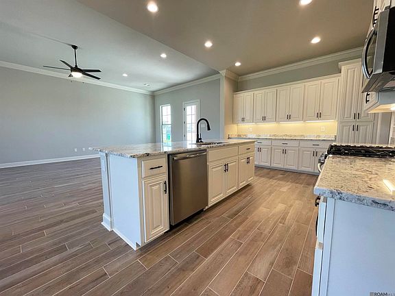 Awesome builder rate and a FREE refrigerator (restrictions apply)! The LACOMBE IV B in Sugar Mill Plantation community offers a 3 bedroom, 2 full bathroom, open design with a computer nook. Upgrades for this home include luxury wood-look ceramic tile flooring, a gas appliance package, framed mirrors for all bathrooms, undermount cabinet lighting, and more! Features: separate vanities, garden tub, separate shower, and walk-in closet in the primary suite, primary closet walks through to the laundry room for added convenience, tray ceiling in the master bedroom, walk-in closet in bedroom 2, kitchen island, mud room with boot bench, covered front porch, covered rear patio, side-entry garage, undermount sinks, cabinet hardware throughout, ceiling fans in the living room and primary bedroom are standard, smoke and carbon monoxide detectors, automatic garage door with 2 remotes, landscaping, architectural 30-year shingles, flood lights, and more! Energy Efficient Features: a tankless gas water heater, a kitchen appliance package, low E tilt-in windows, and more!