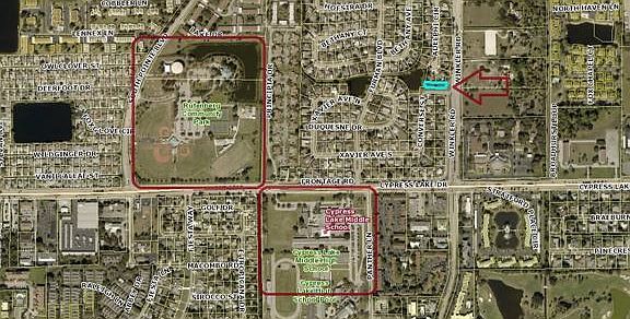 Motivated Sellers...Negotiable. Interesting....Lot on the corner of Seton Hall Ave and Winkler Rd at the entrance to Principia on a lake. Near to Rutenberg Community Park, Cypress Lake Middle School and Cypress Lake High School. The home at the back of the lot is also for sale.