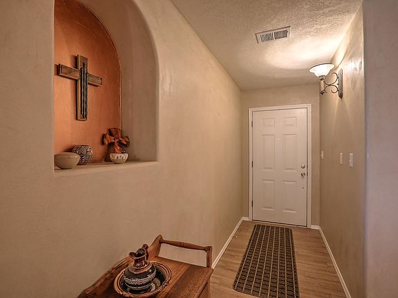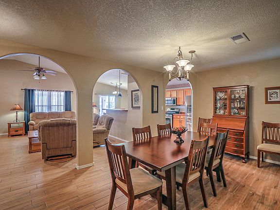 Exquisite Enchanted Hills Home, open and bright. Tile roof, 3 car garage and extra 10'x8' storage. Wood-look tile throughout, diamond finish plaster in the living/dining areas. Eat in Kitchen with updated stainless steel appliances, gas cooking, and reverse osmosis water. Formal dining room. The pellet stove will keep you toasty warm. The master suite is spacious with a large walk-in closet. Updated cooler, water heater and garage door. The backyard is a peaceful retreat on your covered porch with two ceiling fans, stamped concrete and perfect for entertaining. Side double gate could possibly allow for car or RV parking. Solar system to keep your energy costs down. Large lot conveniently located to restaurants, shopping, schools and parks. Don't miss this rare opportunity.