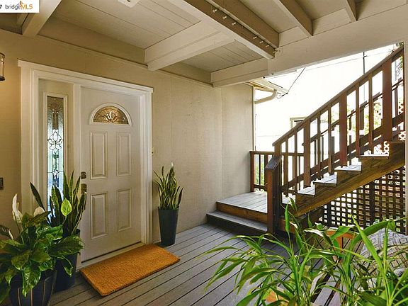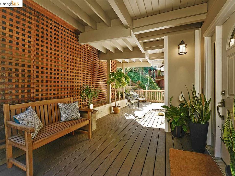 Serene Montclair haven has sweeping views of the Shepherd Canyon hills. The living spaces have an open concept and pleasant ambient light. Outdoor living is easily accessible through double sliding glass doors from the living and dining rooms. The cheerful, updated kitchen with newly installed Quartz counters has French doors that open to the front deck and terraced garden. Hill views are seen from two of the bedrooms and all the bedrooms have their own private deck. There is a 2 car garage and driveway for great off-street parking.