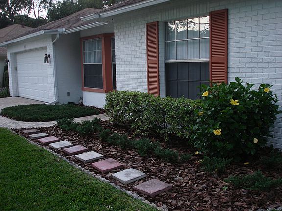 The Timber Pines subdivision is a 55+ active gated community which some call ‘Paradise’ or ‘The Best Kept Secret in Florida’. For only $189/month HOA fees, owners are entitled to free use of 3 golf courses, and a round on the Championship course costs only $22. There are dozens of clubs, active tennis & pickle ball leagues, bocce, horseshoes, shuffle board, 2 heated pools, 2 hot tubs, a Country Club, a resident activity center (billiards, woodworking, gym, & arts & crafts), and a Performing Arts Center. Any day of the week you will find games of bridge, canasta, mahjong, etc., being played. WIFI is available at the Lodge, including the library where there are a number of computer terminals available to owners. There is a second library in the Arts & Crafts room where you can borrow books & magazines on quilting, knitting & crocheting, cross stitch, interior design, sewing, just to name a few . But most important is the Community's financial status. The Board of Directors plan years in advance so when a major expenditure is required the money is already allocated. It is unusual for an Association to have such financial stability. Timber Pines has never charged the residents a Special Assessment in its entire history. Our home has impressive porcelain tile in the living room, dining room & kitchen as well as spanish lace ceilings & crown molding. It is the Pinewood model which has be altered to have an open floor plan. When you walk in the front door you can see right through to the lanai and beyond to the beautiful foliage in the back yard. The overwhelming opinion is that it feels very spacious. The kitchen has been updated with cream colored wood cabinets, stainless steel appliances & LED lighting. The quartz countertop is non-porous & so non-absorbent (no staining or bacterial growth). The Pelican farm style sink is granite composite with antibacterial protection. The contrast between the light cabinets & dark countertops is truly stunning. *The LG Stainless Steel Microwave has Extenda Vent (ask for a demo on that!!), sensor cook, 3 custom settings & more. *The LG Stainless Steel Refrigerator has French doors above, a pull out freezer drawer below, slide back shelves, LED internal lighting, and more. *The LG Stainless Steel Electric Range has a glass top; the oven has the following settings: bake, convection bake & roast, broil, Sabbath, 3 programmable modes, and more. *Samsung Stainless Steel Dishwasher has adjustable racks, a storm wash setting, and is 48 dBA silence rating and more. There is an archway into the lanai, where the 3 'walls' are double pane sliding glass doors looking out on the backyard foliage where there is an arbor, which is especially beautiful when the honeysuckle is in bloom. The sliders have energy efficient 3M Sun Control window film offering daytime privacy. Each section of sliders has a screen panel so the glass can be opened, the screen panel pulled over when you choose to let in that wonderful Florida atmosphere. A meandering block path through the foliage brings you right to a 2.2 mile walking path. The dining room has a solar tube which brightens during the day and an internal light kit to brighten at night. The 2 bathrooms have been updated: both have full tile showers, high efficiency toilets, new cabinets & counter tops. The house has been wired for DirecTv. The attic has extra insulation and the in-ground irrigation system runs off its own well. Pavers in the curved walkway & driveway enhance the low maintenance junipers in the landscaping. Our Village is pet friendly and active with events. Our neighbors are delightful. Could you ask for a better retirement?