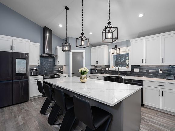 This 5-bedroom, 3-bathroom home boasts a spacious primary suite featuring a luxurious soaking tub, walk-in shower, and a roomy walk-in closet. The kitchen is equipped w/ sleek black stainless appliances, a massive island that comfortably seats 4-5, and a convenient walk-in pantry. The open layout of the kitchen, dining, and living room, complete w/ a vaulted ceiling and electric fireplace, creates a bright and inviting space filled w/ natural light from large windows. On the main floor you'll find 2 bedrooms with walk-in closets, a full bath, and a laundry area. The lower level includes 2 additional bedrooms, a family room w/ gas fireplace, storage space, and another full bath. Step outside into an entertainer's dream backyard featuring a substantial 20x36 concrete patio, an above-ground pool, and a charming gazebo. Basketball enthusiasts will appreciate the dedicated hoop, and the extra concrete space on the side of the house. The heated 3-car garage is the perfect finishing touch.