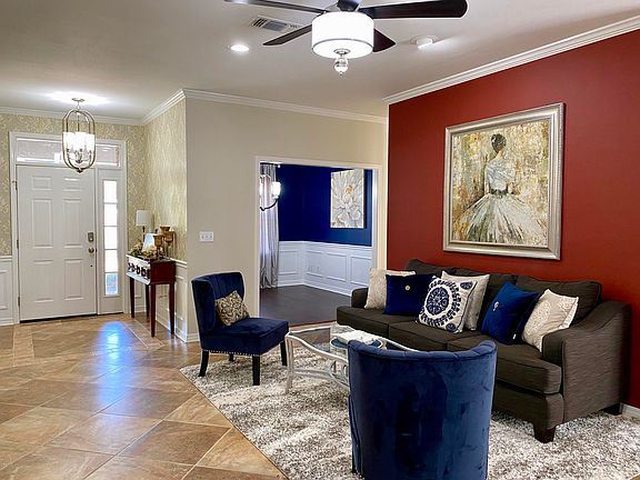 - Interior Features: Fireplace, Window Treatments, French Doors, Ceiling Fan, High Ceilings, Natural Stone Counter Tops, Walk-in Closets