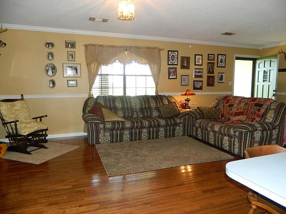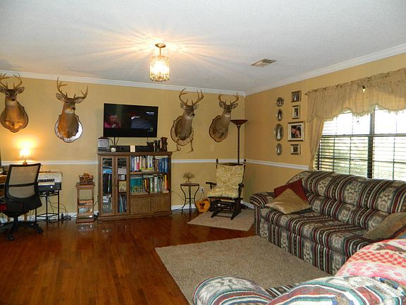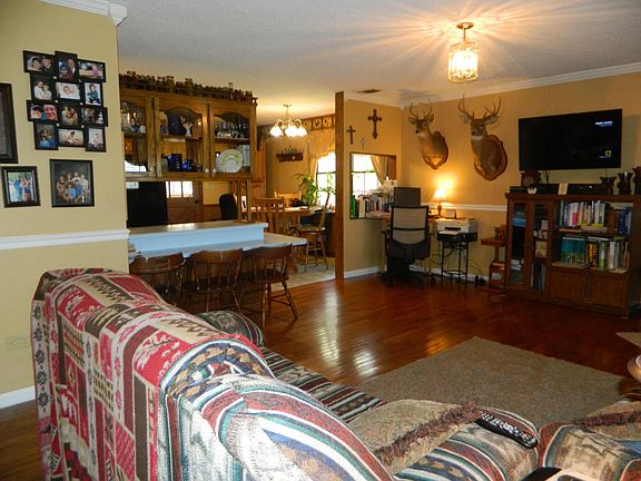 This lovely home could easily have two living quarters. The main level has a large kitchen with plenty of cabinets, a living room with beautiful hardwood floors, 2 bedrooms, and 2 bathrooms. The full walk out basement has a living area (currently used as an exercise room), a kitchenette, a 3rd bedroom, and a 3rd bathroom. Outside you love the large 1.3 acre lot with gorgeous plants and fruit trees. There are several carports and an outbuilding for storage.