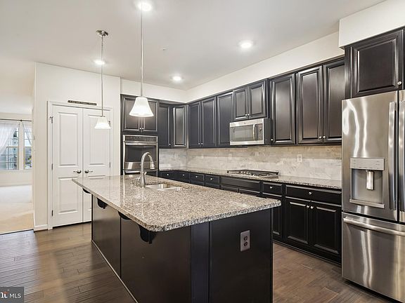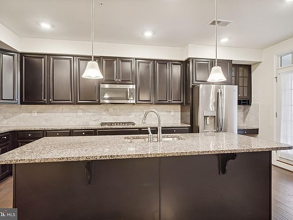 Beautiful 2017-BUILD END UNIT ‘Picasso’ Ryan Home in Linton, within Ballenger Creek! Home has been loved like it is brand new! Contemporary layout. High ceilings. Recessed lighting and tasteful light fixtures. Enter your home from street or via your private attached garage plus off street parking spot ! Both entrances feature baseboard heating, to warm up your feet after being out in the cold. Carpeted stairway to main level. PLEASE PUT ON BOOTIES/REMOVE SHOES WHEN TOURING HOME. The front of the main level has a comfy feel with beautiful light carpet. Coat closet is to the immediate left of the stairs and across from a powder room. Approach the family room area, flooded by natural light: 3 large windows facing the front of the home plus the bonus of additional natural light of a side window that an end unit home features. Lots of light you in the modern office, from the glass French doors, to the recessed lights, to the CUSTOM partially opened wall. Custom ‘Misty Gray” wood flooring in the open kitchen, dining room and living room areas. Kitchen boasts high end stainless steel ‘Profile’ appliances, including a double oven, 5 burners, a built in microwave and a refrigerator with an ice maker and a substantial size freezer. The island features deep double sinks, can be used as a breakfast bar. An abundance of ‘Scottsdale Maple Espresso’ cabinets and shelving, plus a work area. The open dining room allows you to entertain large groups and transitions into the living room. Enjoy the warmth and ambiance of your gas fireplace, while relaxing on the 2 beautiful Italian Leather sofas, which the owners are providing as a housewarming present to you and/or enjoy watching television from the Toshiba television, which is mounted above the fireplace Enjoy the outdoors on the open balcony, which is adjacent to the kitchen and living room. An Anderson Storm door was installed roughly 2 years ago. Awesome separation between the entertaining areas and the private bedroom areas! Go up the warmly carpeted steps to the 3 bedrooms, full baths and laundry! The primary bedroom and bathroom are truly special, with a retreat feel. You may never want to leave! Awesome tray ceiling with crown molding. The bedroom boasts 2 huge walk-in closets. As an end unit home, the primary bedroom gets light from the back and side windows. The primary bathroom features a private powdering area, 2 vanities; a large linen closet; a large shower with a seating area, and both a wall and hand-held shower head. The other 2 bedrooms are sizeable and 1 of the bedrooms has natural light coming from the front and side of the house. Other than the bathrooms and laundry area, the top level is carpeted. The hall bathroom features a spacious double vanity plus a combination shower and bath with a hand-held shower head. Next to the hall bath is a full size linen closet and across from that are the utilities, including a tankless water heater! Beautiful and elegant living with NO CITY TAXES! Very little exterior maintenance! The perfect flare of private scenic living in a very convenient location. Currently the condo association maintains all exteriors including roof, landscaping, and snow removal. Walking distance to the community pools-1 for adults and 1 for babies/little kids, several playgrounds, dog-walking paths, bike trails, fitness center, and clubhouse. Great commuter home: near public transportation—the 85 and 10 buses. MARC train station in Frederick. Close to I-270, I-70, Route 15, Route 40, Route 340. Enjoy the hiking trails, parks and downtown Frederick. Nearby parks include Ballenger Creek Park, Carrollton Park, Frederick Golf Club, Richland Golf Club. Close to schools. Minutes from the Westview Park Promenade featuring retail, restaurants and movie theater. Close Westview Corner Mall, Westfield Corporate Centre, Ballenger Commerce Centre, DHHS. Fall in Love!