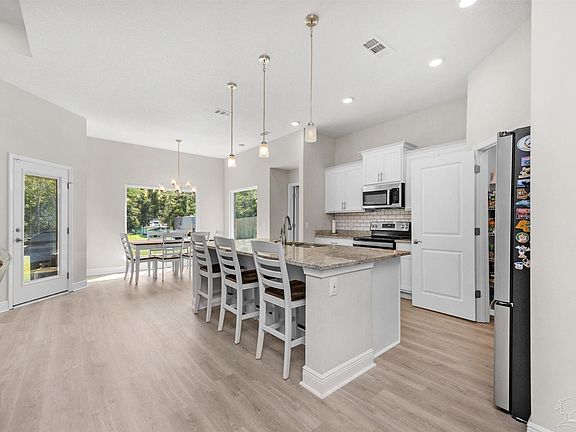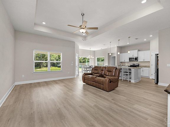MOVE IN READY home located on Garcon Point. Just 6 minutes away from the interstate for easy access to shopping, restaurants, Pensacola Beach and more! As an added bonus, there is a private neighborhood park with a kayak/canoe launch, picnic tables and a COMMUNITY DOCK overlooking East Bay for residents to enjoy. As you enter through the foyer, you’ll notice a spacious living area with an open floor plan to the kitchen and dining, perfect for entertaining. The split floor plan offers 4 bedrooms and 2 bathrooms with tray ceilings, LVP flooring, granite countertops and stainless steel appliances. The owner’s suite features his/her sinks, a large custom tiled shower, and a walk in closet. Outside you’ll find additional entertainment space, covered patio and a large backyard with an 8 foot fence that offers plenty of space and privacy for children/pets to play, gardening, or even a pole barn - NO HOA! The side yard of the home is large enough to access the backyard for parking multiple boats, RVs or trailers. This home checks all the boxes!
