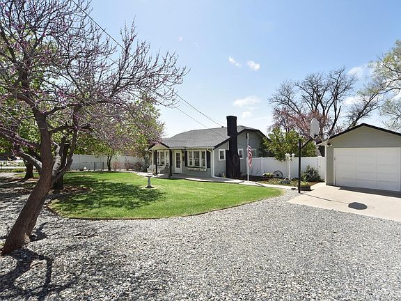 Absolutely the most charming home and incredible 1 acre property in town! Sweeping views of the Colorado mountains that will take your breath away! Pristine home recently redone with hand scraped hardwood floors, newer high end cabinets, slab granite, stainless farm sink, practical layout with so much original character, yet thoughtfully updated. Master bedroom ad private bath, ???kids??? loft not included in SF, but a great playroom or studio. Immaculate grounds including flowering trees, raised garden bed, pergola with flagstone paver patio, swing, extensive vinyl fenced in backyard, and an entertainers covered deck to enjoy the view! Sheds, shops, chicken coop or dog training outbuilding with electricity, 1 car garage and 1 car carport, RV storage???or build up, over and out to your hearts content. Possible subdivision available. Tremendous pride of ownership shows throughout the inside and grounds on this property! You won't be disappointed here!