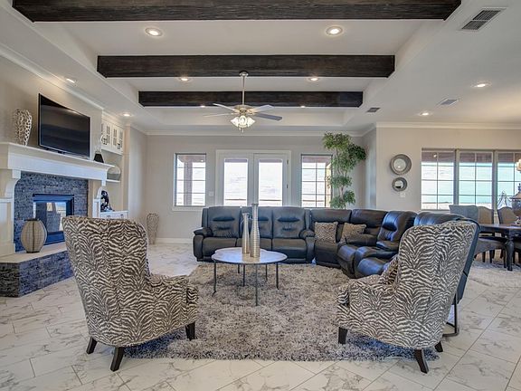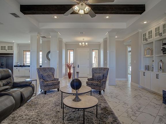 Fantastic West Texas views from the comfort of a modern luxurious home situated on 24.9 acres. This home has top of the line flooring, fixtures, appliances and counter tops throughout and gorgeous views from almost every room. Open concept kitchen, dining, family room. Kitchen boasts a gas range, large built-in fridge/freezer, instant hot water, an island with sink, wine cooler and room for 4 bar stools. Isolated master suite with lots of natural light, fireplace, walk-in closet with dressing area, and a laundry/utility room just steps away. Other perks include second master suite, large basement, office with built-in shelves/cabinets (can be switched back to 4th bedroom), and a 1,358 sq ft 3 car garage with workshop. Enjoy the privacy of grilling on back patio or entertaining on the large, vaulted, covered patio with views stretching as far as the eye can see. Over a 1,200 feet of covered outdoor living space. Horses and other livestock Okay. Less than 30 minutes from Lubbock
