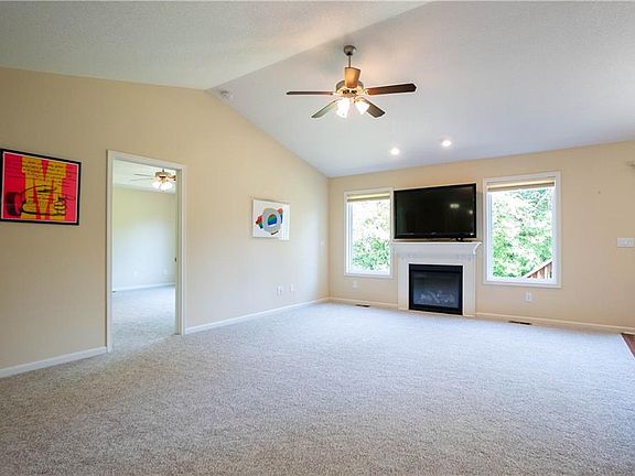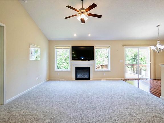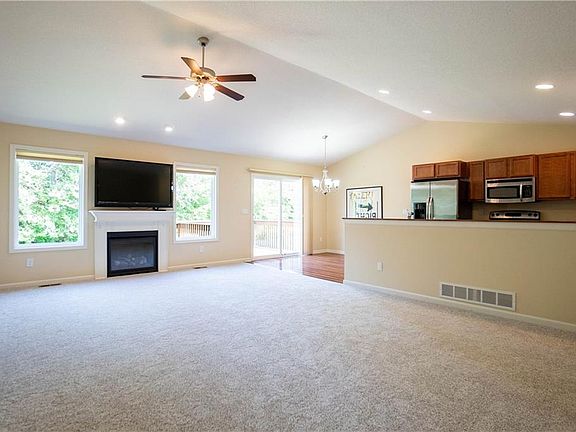 This charming "better-than-new" 3BR/2Bath home boasts 1900+ finished square feet. New carpet throughout the main floor and finished basement. Great open living space with vaulted ceilings and fireplace look out onto the backyard lined with mature trees. All window coverings and blinds are included. Beautifully appointed kitchen boasts granite countertops, upgraded cabinets, eat-in dining and stainless steel appliances. The mud room off the 3 car garage includes full size washer/dryer. Large owner-suite overlooks backyard. Two additional bedrooms share a bath on the main floor. Bonus 500+ sf finished living space in basement complete with daylight windows. HVAC and water heater recently replaced. Wonderful location in golf community in Woodland Hills. Check out the low taxes!