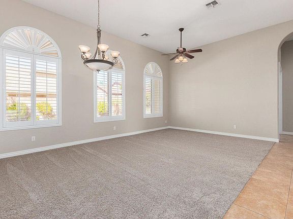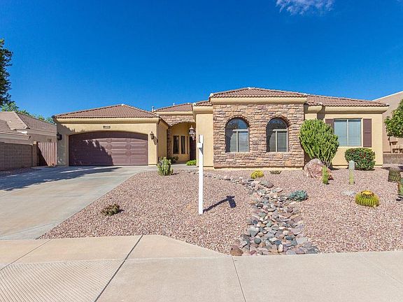 VACANT CLEANED & FRESHLY PAINTED! This SINGLE STORY CUSTOM home is GORGEOUS inside & out! Perfect curb appeal with a 3 car garage NEW EPOXY FLOORS, partial stone front elevation. Enter to formal living & dining with 12 foot ceilings and NEW INTERIOR PAINT. Open concept for the kitchen, dining and family room. The family room has a double sided fireplace with the formal living room,built-in media center and access to the patio. The eat-in kitchen has Alder cabinets, granite counters, SS appliances, walk-in pantry and breakfast bar. Generous sized GUEST bedrooms NEW CARPET. Laundry room has cabinets and sink. Powder room. Large master has private entrance to patio and 12 FOOT ceilings. The master bath includes his & hers vanity, deep soaking tub, tiled step-in STONE shower and walk-in closet