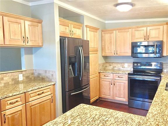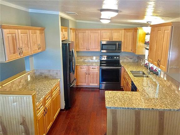 Beautifully remodeled and partially furnished 2BR/2BA home in Brookhaven Village. Kitchen with Samsung appliances (1 year old), Kitchen cabinets (9 months old), and Granite countertops. New wood flooring in Kitchen, Dining Room and Hallway with Carpeting in Living Room and Bedrooms. Master Suite has 2 walk in closets, dual sinks and shower. The 2nd bathroom features new vanity and jetted tub. All new windows with life time warranty. Metal Roof is 6 years old and AC is 3 years old. In this community you own your own lot and the HOA fees are only $25/month. Enjoy the heated community pool, club house, and shuffleboard. This is a NO PET lot. There are just too many improvements to list here so make an appointment to see this home today. You won't be disappointed!