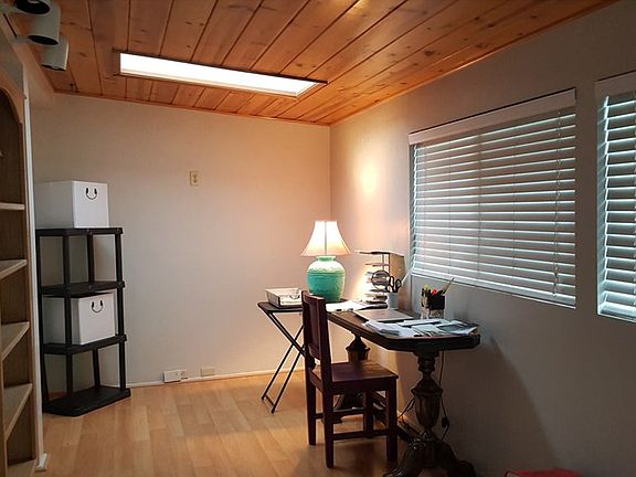 CUTE & CLEAN HOME NESTLED IN THE PINES! Experience the fresh air and majestic pine trees right outside your door. New Roof installed August 2016! This lovely 2 bedroom, 1.5 bath home also has a nice bonus room with laminate wood floors & skylight that is a great office space and the extra 1/2 bath is over-sized with a full wall of storage cabinets. You'll love the open kitchen and peninsula island that gives you plenty of prep space for cooking & extra storage in the pantry cabinets, gas stove & oven, dishwasher and dining nook with front facing bay windows. It has a nice living room with vaulted ceilings, a cozy wood stove on a tile hearth plus central heat and down the hall is the inside laundry, full bath with soaking tub & shower with linen closets & nice vanity counter plus each bedroom has a spacious feel. This is a tranquil retreat from the hustle and bustle of hectic city life. This home is clean and has been well maintained. The nicely landscaped yard makes you feel like you've escaped to a retreat and is perfect for entertaining, gardening, relaxing or whatever you love to do. Fully fenced & gated back yard, plenty of parking space and RV parking with power & water plus a large shipping container with 220v power to it for secure shop and storage space! Just far away enough for privacy but only minutes to all your essential needs such as shopping, restaurants, the post office and more! If you're looking for a nice little place not in an HOA....this is it!!