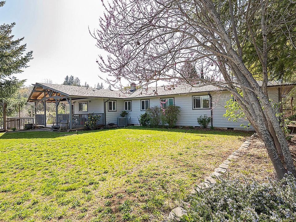 Enjoy your own slice of paradise! This lovely home sits on just over 1.5 gorgeous acres at the end of a private driveway. A 3-bedroom 2 bath home with gorgeous views. Mature fruit trees fenced garden areas and a chicken coop are just a few of the perks! Custom cabinetry in the kitchen, cozy living room with wood burning stove, updated bathrooms, large primary bedroom with ensuite bathroom as well as 2 other bedrooms (one has a Murphy bed) on the main floor. Downstairs you will find a second living area with a fireplace and access to the yard. Another room that could be used as a bedroom or office with attached dry storage room. But wait, there's more! Bring your projects! Directly behind the downstairs living room is an attached workshop. Stay warm while working on your hobbies during the cold months! Not to mention it is equipped with solar panels to help cut the cost of utilities!