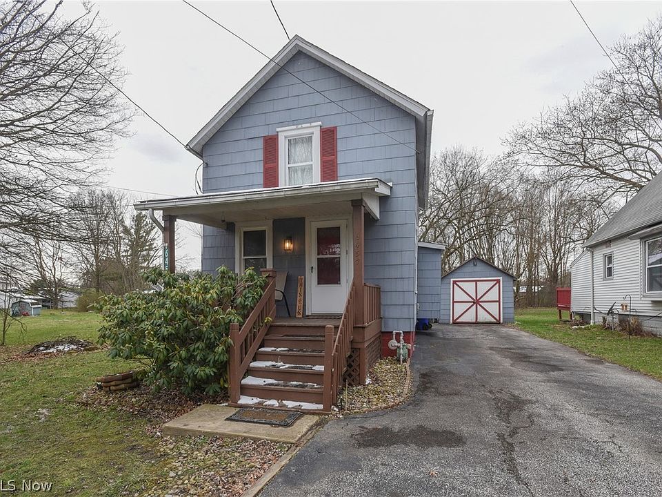 Welcome to your cozy retreat in Ravenna, Ohio! Nestled on two lots in a peaceful neighborhood setting, this charming two bedroom, one bathroom home offers a perfect blend of comfort and convenience. As you approach the home, the spacious covered front porch invites you up to the front entrance. Through the front door, you'll immediately enter the warm and inviting living room. Past the living room you'll find the formal dining room which connects directly to the kitchen, featuring newer appliances, providing the perfect setup for daily living as well as hosting guests! The second floor of the home is well-appointed with two bedrooms and full bathroom. The washer and dryer in the basement laundry area will be staying with the home for you to enjoy! There are also plenty of window A/C units in the basement, ready for you to install for those warm summer days ahead. Beyond the enclosed back porch/mudroom area, the property features a lovely back yard, ideal for gardening, hosting barbecues, or simply unwinding after a long day. A detached garage provides parking and additional storage space, and connects to a covered patio area for outdoor gatherings. Bonus: the patio furniture stays! This home offers easy access to all of the area amenities and is conveniently located near the KSU campus. Whether you're a first-time buyer, downsizing, or seeking an investment opportunity, this home is sure to steal your heart. Don't miss out on the chance to make this adorable home yours – schedule your showing today!