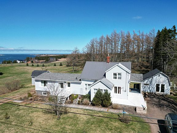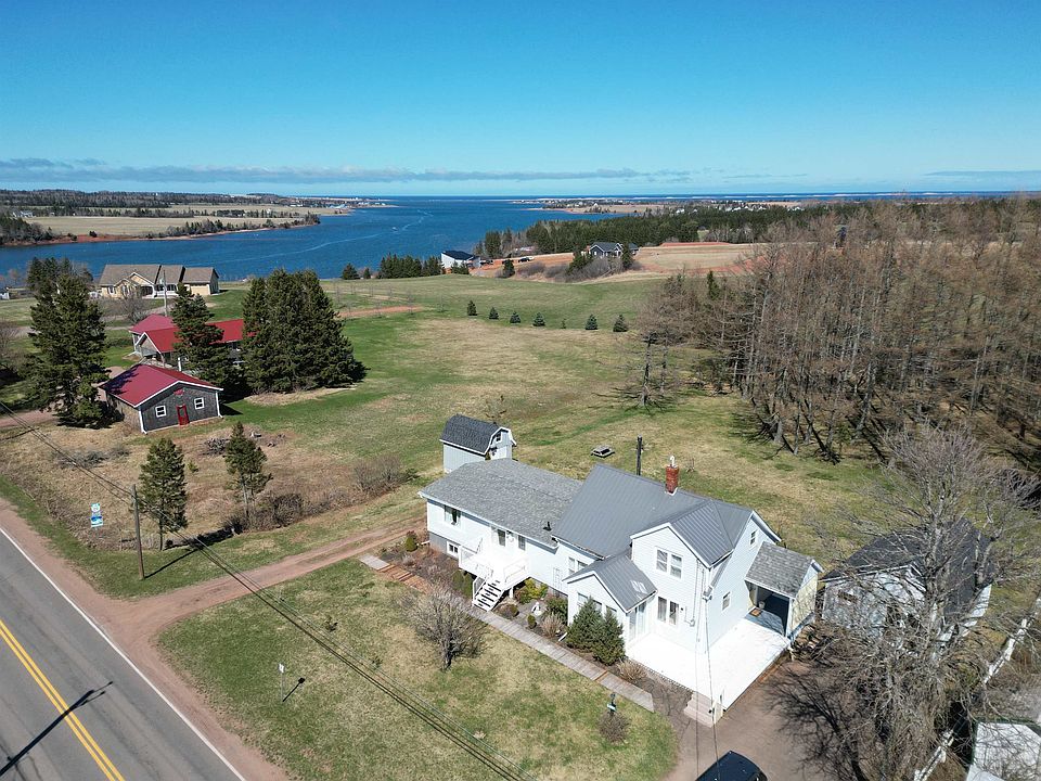 Lovely, well-maintained country duplex on 1 Acre. It has a million dollar view of New London Bay with the Gulf of St. Lawrence in the background. Each part of this home has its own unique character. The newer side of the duplex is a raised-ranch. Main level has a large open-concept Kitchen/Dining Room with a large picture window looking out over the forest and the perfect maritime view. The sizeable Living Room has a propane Stove. There is also a cozy Office/Den, and a 3 pc. Bathroom with laundry facility. The lower level of the home has a large Rec. Room with an impressive propane fireplace. This level has 3 Bed Rooms, full Storage Room and a large Bathroom. The original part of the duplex has two levels; also. Main level has a Kitchen with large Island and a Sun Room/ Ofc. The Dining/Living Room with has a new cozy Danish wood stove. The room also has the same great view! There is a 2 pc. Bathroom and separate laundry/mud room off the main entrance. The second level has 2 good-sized Bed Rms. and a 4 pc. Bathroom. This side has been used successfully as a Vacation Home with almost perfect Tourist Visitor rental reviews. The area has all kinds of amenities. The Duplex is a 10 min. drive to PEI's main attraction...Cavendish Beach! And; a 3 min. drive to 2 Golf Courses; a 2 min. walk to 2 restaurants. But; the best surprise is the home of the author of the well-known books titled, "Anne of Green Gables" is in the neighbourhood! There are 2 other buildings on the property. One is 16' X 22' three-season space (currently used as a small Craft/Coffee shop/Studio and the other is a 1 story Shed that is 12' X 17'. The first building could be modified to be a summer rental. In Summary: a new Buyer would have a "GREAT DEAL"! Two homes- 1 side with 3 bedrooms. and 2 bathrooms. The other side-with 2 bedrooms and 2 bathrooms. Two homes for one reasonably-priced home!