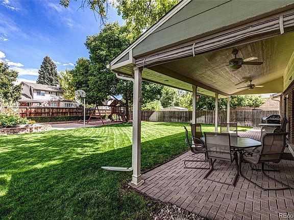 Welcome to your new home located in Littleton's desirable Columbine Hills neighborhood! Enjoy an established, friendly community with ample lots, this one nearly 1/4 acre. Check out the private backyard--it's spectacular! Beautifully manicured by a green thumb, it boasts perfect hedges, mature trees providing plentiful shade, a storage shed, raised organic garden beds producing cucumbers, zucchini, peppers, corn, pumpkin, raspberries/blackberries & more. Your go-to tranquil oasis! Kid and pet friendly too. You'll find a basketball court, handmade children's play set with swings. The oversized covered patio is fitted with fans, sun shade & exterior lights, the perfect place to relax and entertain friends! Inside enjoy a cozy living room upon entering, family room with wood burning fireplace, formal dining room & eat-in kitchen from which you step out to the patio & backyard. Half bath & laundry on the main. Upstairs are 4 bedrooms including the primary suite with adjoining renovated 3/4 bath, and full bath with dual vanity & Jacuzzi soaking tub. Big ticket items of note include a brand new roof with 6 year transferable warranty, new exterior paint, freshly painted interior in neutral colors, all prepared for you to move right in. Gutters are mesh covered for easy maintenance; sprinklers front & rear, a radon system is in place; central air, attic and whole house fans cool the home wonderfully. Your driveway is south-facing. This property is close to shopping, parks and award-winning Jefferson County schools. Kids can walk to school! You have quick access to major highways (C-470, Santa Fe) and public transportation. Your home search is over - make it yours today!