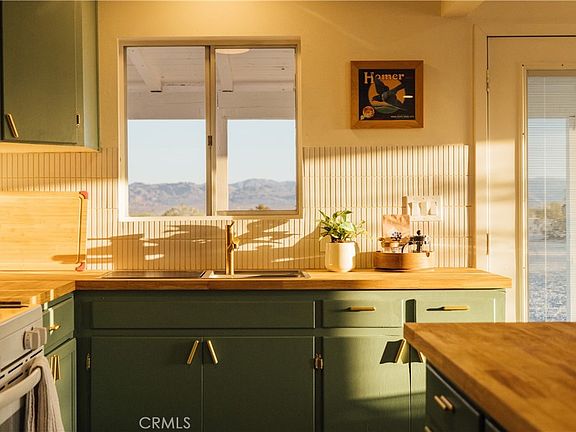 Set on five acres in desirable North Joshua Tree, this recently remodeled and freshly repainted 1-bed home with bonus studio offers sweeping southern views of Joshua Tree National Park. Thoughtfully updated while preserving its desert character, the residence features concrete flooring throughout and a cozy wood-burning fireplace—perfect for cool desert evenings. New sliding glass doors in both the large primary bedroom and the living room frame the surrounding landscape and open to expansive views, creating a seamless indoor–outdoor connection. The property is currently operating as a successful Airbnb, while also lending itself beautifully to use as a full-time residence or second home. Both the main home and the separate studio are equipped with new mini-split systems for efficient heating and cooling. The detached studio provides flexible space for guests, creative pursuits, or remote work and includes a laundry room and toilet. Outdoors, the partially fenced five-acre parcel offers privacy and usability, complemented by an outdoor shower ideal for desert living. Also EV charging in covered carport. Surrounded by native desert landscape, open skies, and unobstructed views, this property delivers space, comfort, and versatility all while being 15 minutes from hiking trails and the hip shops and restaurants downtown.