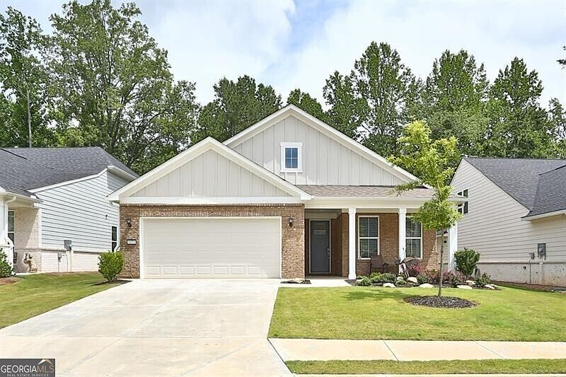 Welcome to your dream home in Lakecrest, an exclusive 55+ active adult community nestled by Lake Lanier. This stunning Mystique model home is loaded with upgrades and extras, totaling approximately $37,000 in upgrades. Property Features: 1. Location: Private lot backing up to serene woods, offering unparalleled privacy. 2. Garage: Extended with a 4 ft. extension for added storage or workspace. 3. Outdoor Living: Enjoy an extended screen lanai, perfect for outdoor entertaining and relaxation. 4. Interior Upgrades: Upgraded carpeting on stairs and second floor for enhanced comfort and style. 5. Technology: Cat 6 network outlets installed throughout the home for high-speed internet and connectivity including front and rear installed security cameras. 6. Convenience: Two natural gas stubs for easy connection of a gas grill and generator and two outside dedicated 240V 60 AMP outlets for a spa and generator connection. 7. Aesthetic Appeal: Polyurethane garage floor coating for durability and aesthetic enhancement. 8. Efficiency: Water-efficient underground watering system with Wi-Fi controller, ensuring your lawn stays lush and green while conserving water. Community Benefits: 1. HOA: Low HOA dues covering all lawn maintenance including weed and feed, allowing for a maintenance-free lifestyle. Location: 1. Located in Lakecrest, a community known for its tranquil surroundings and proximity to Lake Lanier. Don't miss this opportunity to own a meticulously upgraded home in a sought-after 55+ community. Schedule your showing today!