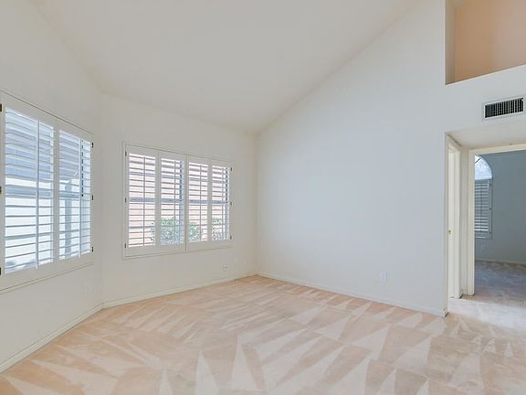 Come say hello to your new home located in Red Mountain Village! This property has great curb appeal, garage w/built-in cabinets, and a lush green landscaping. Step inside and discover a welcoming interior filled with so much natural light, neutral paint throughout, carpet in all the right places, plantation shutters, vaulted ceilings, wood-burning fireplace in family room, 2 bed, and 2 bath. Well maintained eat-in kitchen comes with plenty of cabinets & counter space, fluorescent lighting, breakfast bar, and SS appliances. The main bedroom includes a private exit and lavish en-suite with dual sinks, step-in shower, walk-in closet, and a separate tub you'll definitely enjoy after a busy day. Admire incredible mountain views and golf course view from your covered patio.