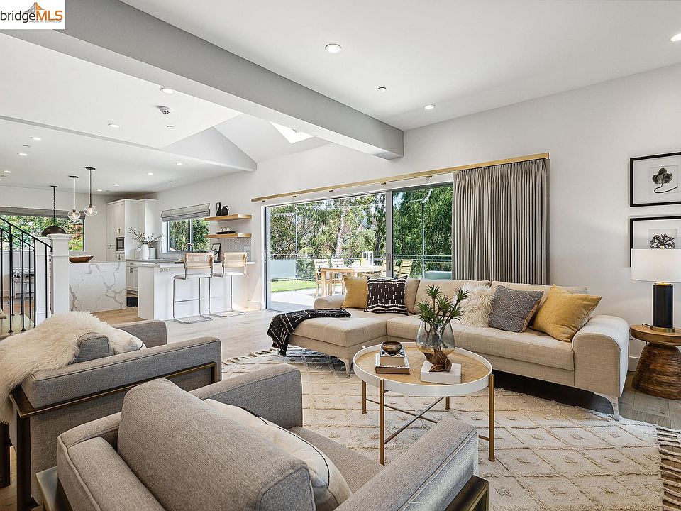 Located on a quiet cul-de-sac, this glamorous contemporary home offers a stylish aesthetic in a tranquil environment. Built in 2016 and recently renovated, 6458 Farallon Way combines luxury with easy living. The main floor features a dramatic open concept design offering a seamless indoor outdoor flow. The kitchen, with top of the line appliances, has a chic stone waterfall island and breakfast area. The living room offers a Carrera marble floating mantle and opens to a spacious deck overlooking the peaceful canyon. A cozy den/office completes the main floor and features sliding doors to a private patio. Enjoy the primary bedroom retreat with bay views, deck and enormous walk-in closet. Adjacent to the primary suite is a spacious family room with half bath. This versatile space could be used as an office or additional BR/nursery. The lower level features 3 bedrooms and 2 baths, wine room and laundry room. Additional features: multiple zone air conditioning, Vivint smart home system, 2 car attached garage with indoor access and more!