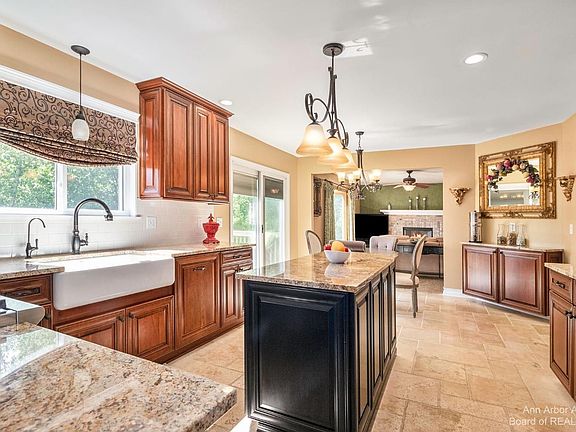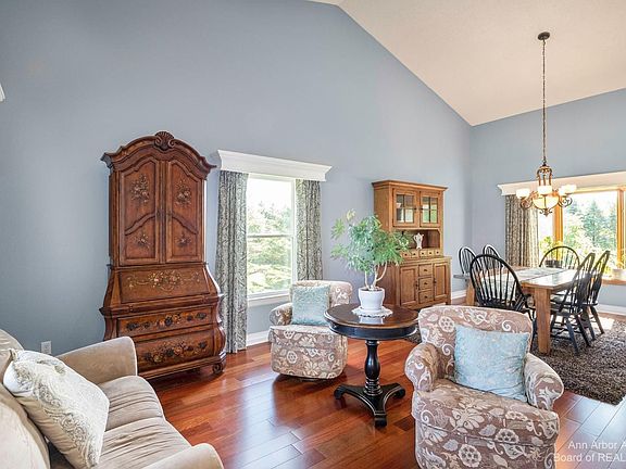 Please submit any offers by 6:00 PM 06/29 - Award winning Dexter Schools - Meticulously maintained home filled with nice surprises including your own outdoor private oasis. Main floor features soaring ceilings, Travertine tile w Versailles pattern, Brazilian Cherry floor in Liv Rm, Din Rm & Den. Custom eat-in kitchen with quality Thomasville Cherry Cabinets w soft close drawers & pull out shelves, Subway tile backsplash, Farmhouse sink, Granite countertops, Wolf Range, Lg capacity refrigerator, 2 built-in pantries, & toe-kick vacuum receptacle. Beautiful remodeled primary bathroom w wainscoting, soaking tub and separate shower & toilet room, plus dual closets. Lower level full finished walk-out with large rec room, workout room, sunny gift-wrapping/craft room and ample storage. Outdoor living will be so much fun with stamped concrete fire pit area, deck w view of canopies, H2X Trainer Swim Spa for year round rest and relaxation, and all surrounded by beautiful perennial gardens. Newer furnace 2019 & roof 2015. Near Hudson Mills Metropark & Golf Course, chain of lakes, & raspberry farm. Super Low HOA fees, $125 Annually. ** See attached video for swim spa ** Nothing to do but unpack and enjoy this lovely home!