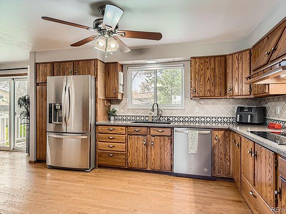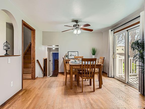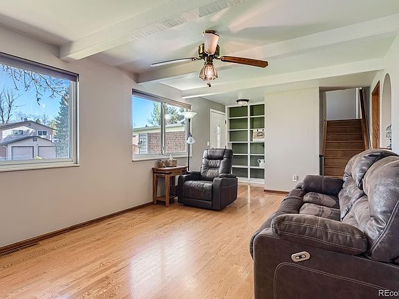 Step into this delightful Columbine Hills gem, nestled on a peaceful block where comfort meets character! Inside, you'll find gleaming hardwood floors spanning the main and upper levels, setting the tone for cozy, warm feel. The living room is pure charm, featuring a gas fireplace with brick accents and built-in shelving—perfect for showcasing your favorite finds. Sunlight pours in through large windows, creating an inviting atmosphere.