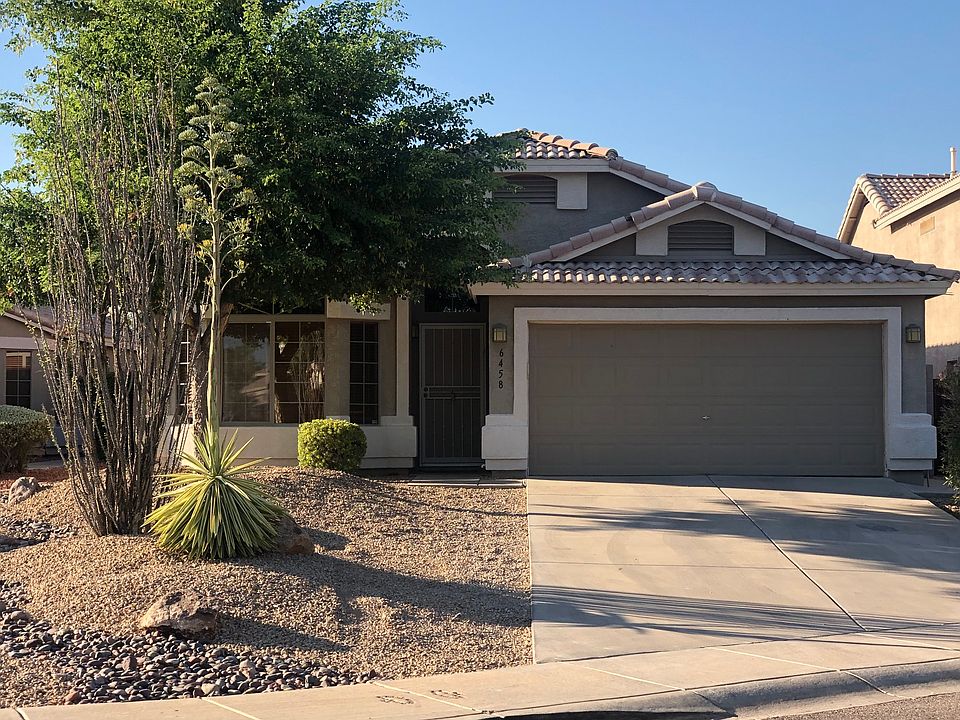 Don't miss out on this amazing home in Entrada; featuring 3 bed, 2 bath, almost 1700 sqft, with all new interior paint, new carpet, vaulted ceilings, open flloor plan and wood blinds throughout. Gorgeous kitchen with maple cabinets, white appliances & nice working island for cooking. Relax in the large master suite featuring dual sinks, separate tub and shower, and large master closet. Big beautiful grassy backyard for entertainment features over sized covered patio, custom paver and mature trees & landscaping. This will not last long at this price!