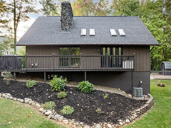 Stop what you're doing and schedule a showing of this incredible, one of a kind, home- it won't last long! First floor has 2 story great room with wood burning fireplace and doors to exterior deck, dining room with additional doors to outdoor patio, updated kitchen, half bathroom and bedroom, currently used as an office. Second floor has 2 more spacious bedrooms and full bathroom. Lower level has laundry room and storage area. There is also a 2 car garage, extra parking areas and shed, as well as a wood shed. This home has so many updates, all you need to do is move in: furnace/ac: 2017; water softener 2016; windows 2016; skylights and blinds 2024; new garage door 2024; roof 2018; retaining wall and extra parking area 2020; shed 2021