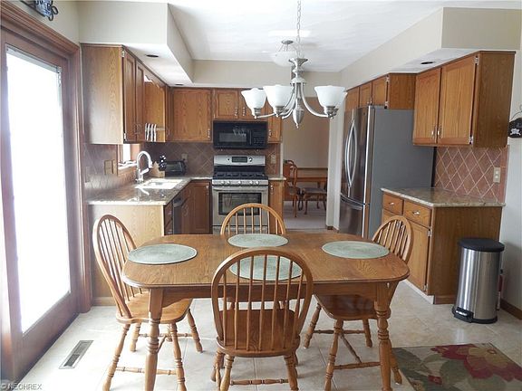 This home has it all. You start with a newer concrete drive then approach the wide covered front porch. Inside is the formal Living Room w newer carpet and a gas fireplace. The formal Dining Room offers newer carpet and chair rail. Now you get to take in the remodeled Kitchen with its granite counters, new large ceramic tile floor and new stainless steel appliances, spacious dinette area too. The Family Room has newer carpet also. Powder Room on the first floor. Upstairs is a full bath, 2 Bedrooms with wide closets and the master Bedroom with 3 closets and a master bath. The basement is finished and divided into a recreation room, an exercise room and a storage room. If that is not enough to please you, open the sliding doors off the Kitchen and step onto the 2 tiered deck that overlooks the fabulous in-ground pool for lots of enjoyment, entertainment or a midnight swim. All surrounded by a privacy fence. Roof, furnace and air are newer but the owner has still purchased a one year home warranty for you.