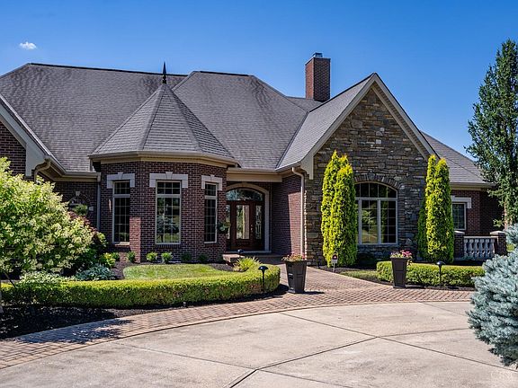 Step into luxury with this exquisite Dennis Ott custom home! A grand entrance with an elegant, curved staircase sets the tone, opening to the great room, eat-in kitchen, and breakfast nook with stunning views of the pond. The first-floor owner's suite offers a relaxing adjoining bathroom and 2 spacious walk-in closets. The walkout basement features a media room, large bar, game area, exercise room, fourth bedroom & full bathroom. Outside, indulge in the ultimate entertainer's paradise with an inviting inground pool and chic bar area, all with spectacular views. This home offers both sophistication and practicality, perfect for hosting and enjoying life's finest moments.