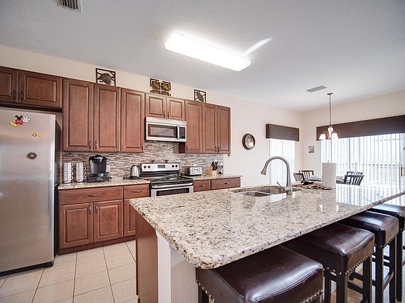 This property is a corporate rental. Please note that the monthly rental price for this property is dynamic and subject to seasonal adjustments. For an accurate quote, provide us with your intended move-in and move-out dates. Discover a spacious haven for relaxation and fun at our modern home in the gated community of The Sanctuary at West Haven. This beautiful retreat boasts a large private pool, perfect for enjoying the Florida sun on the southeast-facing pool deck. Revel in the tranquillity of conservation and lake views, with no rear-facing neighbors and lush shrubs on either side ensuring your privacy. Property Overview Conservation and lake views from the relaxing pool No rear-facing neighbors Fun-filled games room Resort amenities Fully equipped kitchen Air conditioning and indoor ceiling fans FREE WiFi Towels and linens provided FREE use of pack \'n\' play and high chair Laundry room with full-size washer and dryer Professionally managed by White Rose Villas to offer you a superior - personalized service Express check-in. No key pick-up. Drive straight to your vacation home Private parking Detailed guest information guide provided within each property Complimentary starter pack and coffee station Accommodation Living Area 1: Quiet room in the front of the home with a comfortable corner sofa Living Area 2: Family room with large sofa, TV, and access to the pool deck Kitchen: Updated kitchen with stainless steel appliances, granite countertops, and breakfast bar seating for 4 Dining Area 1: Large formal dining table seating 8 Dining Area 2: Breakfast table open to the kitchen with seating for 4 Game Room: Fun-filled air-conditioned games room with air hockey, foosball, and pool tables Upper Level Bedroom 2: Queen-size bed, ceiling fan, flat screen TV, slide closet. Uses family bathroom with shower Bedroom 3: Queen-size bed, ceiling fan, flat screen TV, slide closet. Uses family bathroom with tub/shower combo Bedroom 4: Twin beds, Spiderman theme, ceiling fan, flat screen TV, slide closet. Uses family bathroom with shower Bedroom 5: Twin beds, Princess theme, ceiling fan, flat screen TV, slide closet. Uses family bathroom with tub/shower combo Main Level Bedroom 1: Master suite, King-size bed, closet, ceiling fan, TV. En-suite bathroom with slide closet, bathtub, shower cubicle, His \'n\' hers sinks, and a separate WC Additional Bathroom: Half bath located on the ground floor Pool Area Covered outdoor dining with seating for 4 Guests will enjoy soaking up the sun on the sun loungers Guests may rent a BBQ for a small fee Optional pool and spa heating (additional charges apply) Resort/Local Area This home is under 3 miles from I-4 for easy access to Orlando and all its attractions, and just 90 minutes from east and west coast beaches. West Haven is near Champions Gate and all the new restaurants, shops, and golf. Those looking for a bargain should head for the nearby Posner Park or Premium Outlets, both just a short drive away. Nearby Attractions Airport (Orlando International) - 30 - 35 Minutes Airport (Sanford) - 55 - 60 Minutes Busch Gardens - 55 - 60 Minutes Disney\'s Animal Kingdom - 15 - 20 Minutes Disney\'s Epcot - 15 - 20 Minutes Disney\'s Hollywood Studios - 20 - 25 Minutes Disney\'s Magic Kingdom - 15 - 20 Minutes Universal Studios - 25 - 30 Minutes Ideal Location Situated conveniently near Disney and Universal Studios, our home is surrounded by popular restaurants. The self-check-in process ensures a seamless start to your getaway. Family-Friendly Amenities: Traveling with little ones? Enjoy complimentary use of baby and toddler items, including highchairs and travel cots. Worry-Free Stay: Rest easy knowing our home and pool are professionally managed and maintained, ensuring a worry-free and delightful stay. Immerse yourself in the perfect blend of comfort, entertainment, and convenience at our enchanting vacation home. Book now for an unforgettable escape! Ellis Exclusive Villas We are offering a wide selection of family-friendly vacation homes in Orlando. We have vacation rentals of all types, from 3 to 10-bedroom homes with private pools. Dedicated to creating the perfect vacation. Our local team is on hand to respond to your needs 7 days a week. Book your perfect Florida family vacation getaway today. We look forward to welcoming you! Notes POOL HEATING: This is recommended from October through April to enhance the enjoyment of your pool time. This home has a pool heater and requires a 3-day minimum for the service to be activated. The cost is $40 per day and is best added prior to arrival so the pool is warm when you arrive. LAST MINUTE BOOKINGS: Bookings made within 14 days of the arrival date must check-in during office hours before the access information is released. The credit/debit card used for payment must be shown along with a valid driving license or passport in the same name as the card. As well as a utility bill with the same address as the card billing address. Pre-paid cards are not accepted. **Guests will be required to sign a Rental Agreement and provide a copy of their ID. Contact us to schedule a showing.