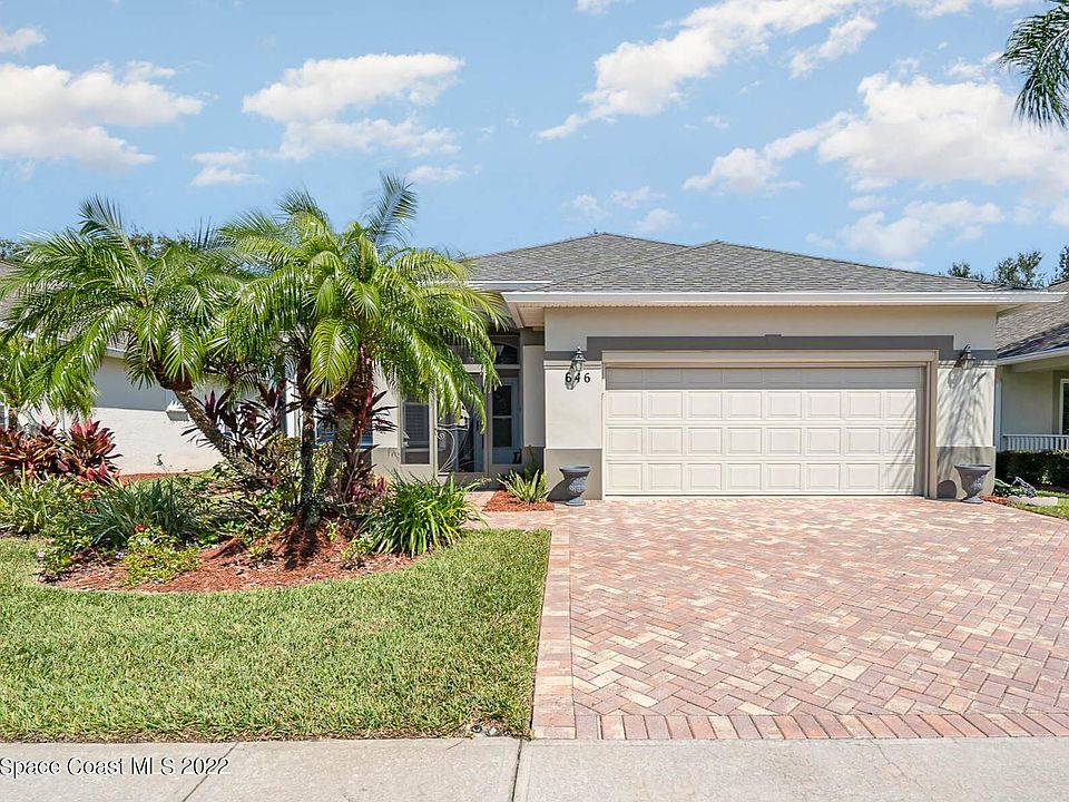 Contract in place with a 72-hour kickout clause. Please schedule a showing if you're interested in this home. MOVE IN READY! This popular floor plan offers a large kitchen with island and spacious eat in area perfect for entertaining. Open split floor plan accommodates formal dining area and living room with screened patio access. Spacious bedrooms, private backyard and even a tiled garage floor add to the value of this home. Recent upgrades include; Quartz Countertops in kitchen, Granite in baths, laminate flooring, Plantation Shutters, Accordion Hurricane Shutters, interior painting, exterior painting, new roof in Oct. '21. Amenities in this gated community include a clubhouse, heated screened pool/spa, gym, bocce, putting green & shuffleboard board plus lawn & irrigation t