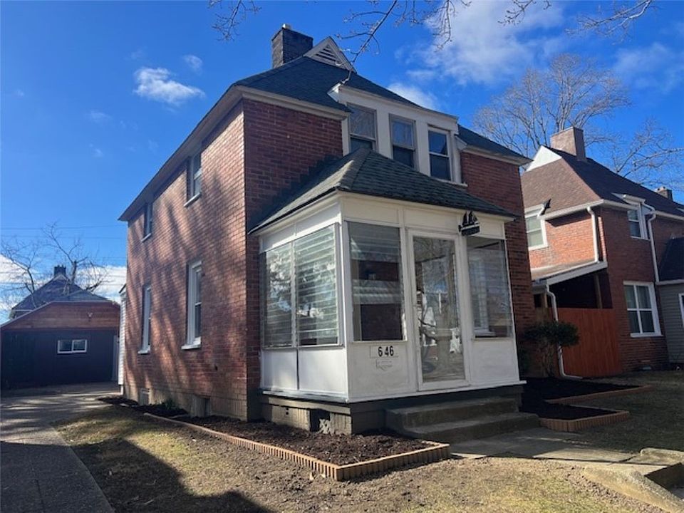 Spacious 3 bedroom, 1.5 bath brick two story on low traffic street! Many updates including kitchen and baths, flooring, lighting, etc. First floor with new luxury vinyl plank flooring and second floor new carpeting! Baths with new toilets, cabinets, sinks, ect. Kitchen cabinets/countertops, sink/faucet and plumbing brand new. Open kitchen and dining room make it great for cooking and entertaining. Dry basement with convenient out entry to/from back yard. Double pane vinyl tilt in windows throughout. Fenced in back yard and 22' x 20' outbuilding that was a two car garage and can easily have an overhead door re-installed. Driveway entry from the street is shared however, there is plenty of room for parking in front of outbuilding for up to 3 cars. Very nice park only four houses away. One year home warranty!