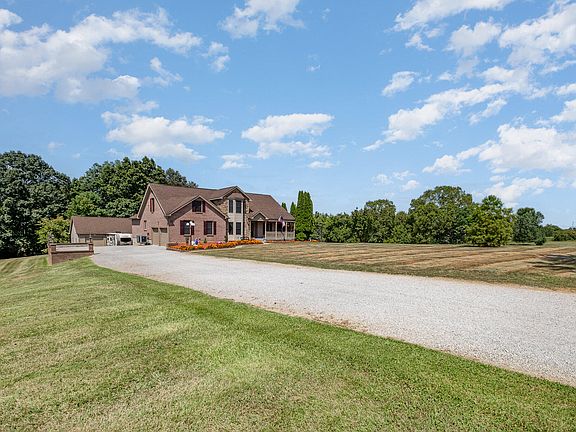 Welcome home to this sprawling, beautiful ,one of a kind, 4 bedroom, 3.5 bath custom built brick 2 story on 6.55 acres. This home has so much to offer with wood floors, central vac, formal dining room, formal living room with 12 foot ceiling, kitchen with breakfast area, large great room with balcony and walk out to deck. Home also offers a tiered tray ceiling and hard wood floors in huge primary bedroom that adjoins primary bath with soaking tub, separate shower, and his/hers walk-in-closets. Finished attic area can be used as a sitting area, office , play room , library or sewing room. The full finished basement boasts of a game room , an entertainment wet bar room perfect for parties, an additional large bedroom , bathroom with shower, a true walkout to patio and custom garden area..Home also offers a detached garage with loft, wood working shop, additional bathroom and a 30 amp Rv hookup spot. Enjoy the awesome wrap around porch , backyard with trails and added chicken coop. Hurry, Dont let this one get away, call me today for a showing. All room sizes are approximate.
