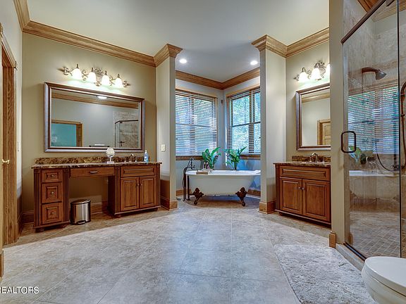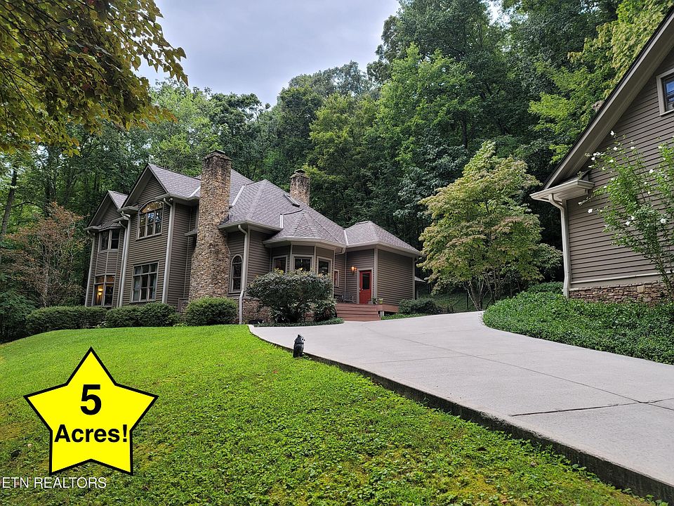 This executive style home has exquisite details throughout. The living room has 25' ceilings and the fireplace has natural stone that goes all the way up! Each bedroom is a very generous size and each of the bedrooms has it's own attached bathroom. The kitchen has newer stainless appliances including a 6 burner gas cooktop and drawer microwave. Just off the kitchen you will find an elegant breakfast area and sitting area with brick fireplace. The home has 2 fireplaces that are both currently natural gas but could be converted to wood burning. The serene surroundings give you the feel of being secluded far from the hustle and bustle while still being only a few short miles from the interstate and barely over 30 minutes drive to University of TN campus. The 5 acres gives you plenty of room to spread out and you can also enjoy the wildlife that includes bear, deer, turkeys, and the occasional bobcat. The roof on the home, Gazebo, and Garage were replaced only a few months ago with Certainteed Presidential Shake Shingles with a 50 year transferable warranty. There is also a screened in Gazebo on the back deck that has plenty of room to enjoy your morning coffee or play a friendly game of cards with friends and family. There are so many things in this home that you have to see to appreciate including but not limited to the solid wood doors, custom millwork and trim, wool carpeting, grandiose stairwell, TREX decking, Claw foot tub and double walk out shower in the master, central Vac system and the list goes on and on! You won't find another home with this amount of acreage and this quality of build so you better act fast! Located just off I-75 and just 37 minutes to downtown Knoxville. If you want secluded, but close to Knox County, you must see this amazing home.