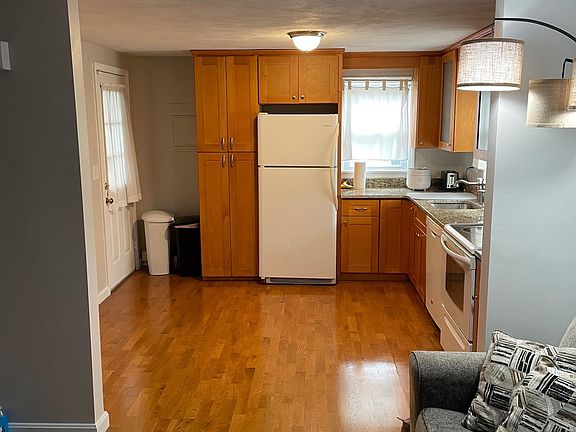 Updated, open floor, 1 bed, 1 bath attached apartment with private entrance located on Main Street in Woburn. Unit is located next to route 95 and right down the road from many restaurants and shops. Kitchen comes with dish washer, fridge, electric stove, and oven. Living room is very open and spacious. Bedroom is also very spacious (fits a king sized bed) with a large California closet. Out the back door is a shared back yard. Landlord pays for water, sewer, landscaping, and snow removal while tenants pay for heat and electricity (electric heating system). Unit comes with 1 off street parking spot with an option to rent another parking spot for $50 per month. No pets please. Washer dryer located in basement. First months rent, security deposit, and broker fee due at lease signing. Good credit and income required. Available for move in May 1st. No pets. No smoking. Off street parking. 12 month lease.