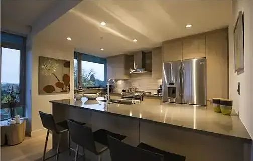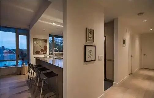 Large gourmet kitchen offers GE Profile stainless steel appls, incl a dual-fuel natural gas range & chimney-style hoodfan, full height natural stone backsplash, wood cabinets & quartz countertops. Enjoy lots of natural light w/ full height windows in almost every room!