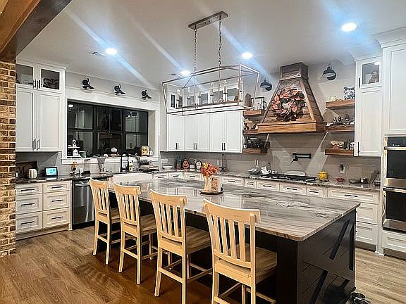 Beautiful, metal home in the Myrick community on 36 acres. The land includes a pond, fenced areas and chicken coop. This house has all of the storage you could ever want! Nice entry way, butler’s pantry, pantry, walk in closets with built in shelves/drawers in every room. Master suite with his (safe room)/her closets, soaking tub, double tile shower. 2 bedrooms with jack/jill bathroom. Room we use as playroom but could be bedroom because has full bath and walk in closet and Another bedroom with walk in closet downstairs. Beautiful foyer with office attached (includes walk in closet with built ins that could be used as bedroom too). Large room upstairs with full bath and closet. Large laundry room with storage and double washers/dryers. Wood burning fireplace. Pool bath. HUGE attic. Kitchen includes double refrigerators, double oven, gas stovetop and quartzite countertops. MUST BE PREAPPROVED FOR VIEWING.
